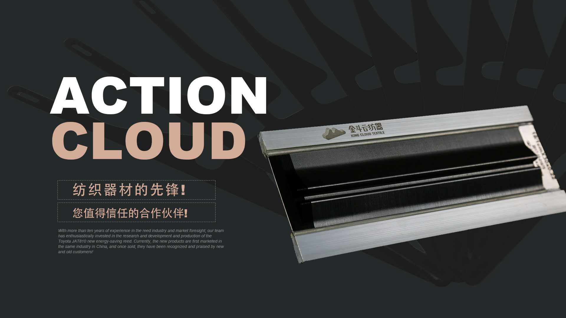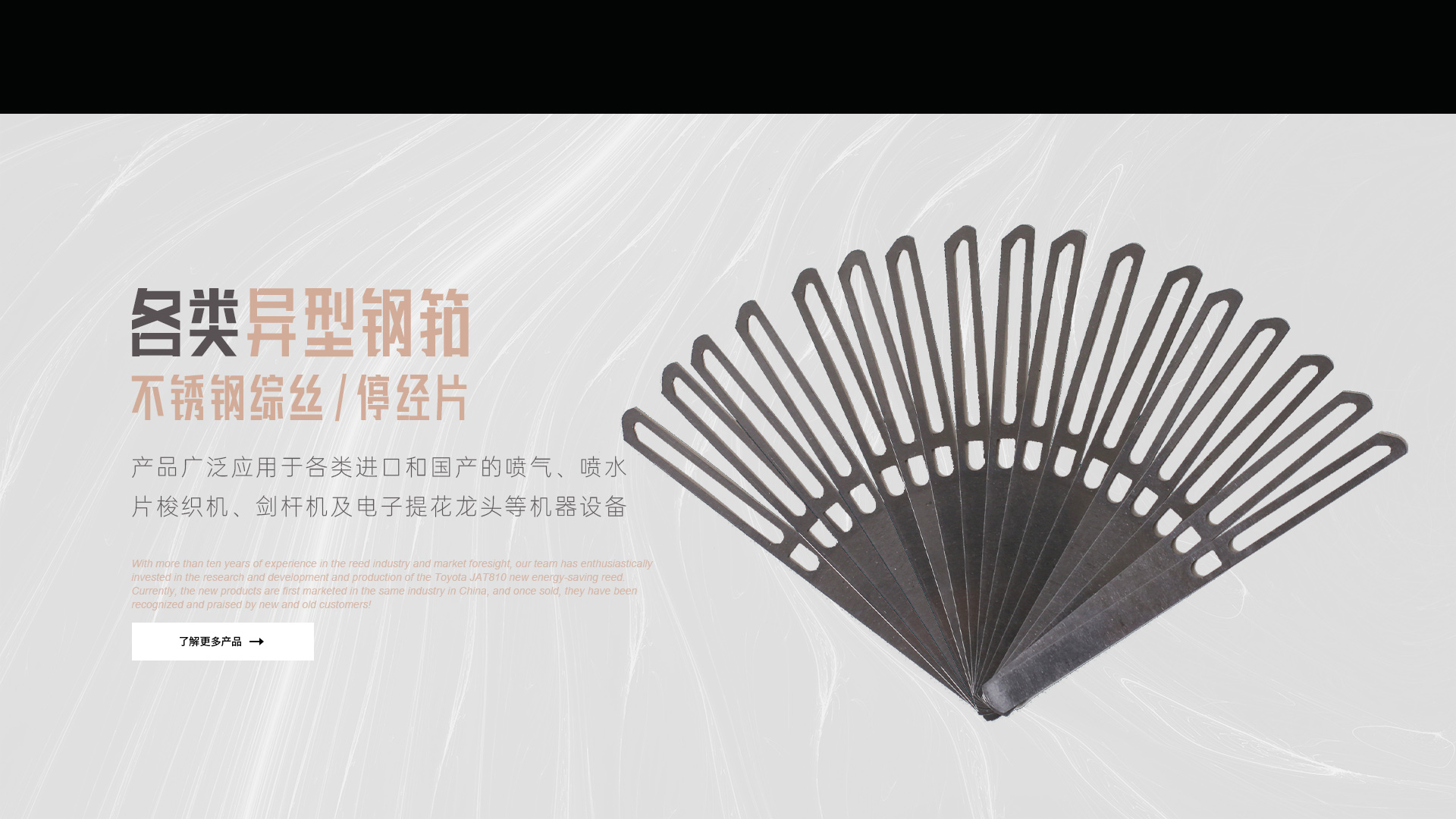 憑借十多年鋼筘行業(yè)經(jīng)驗及對市場的前瞻性,我們團隊滿懷熱情的投入到豐田JAT810新型節(jié)能鋼筘的研發(fā)和生產(chǎn)當中,目前新產(chǎn)品在國內同行業(yè)中先行上市銷售,一經(jīng)銷售就得到了新老客戶的認可和好評!